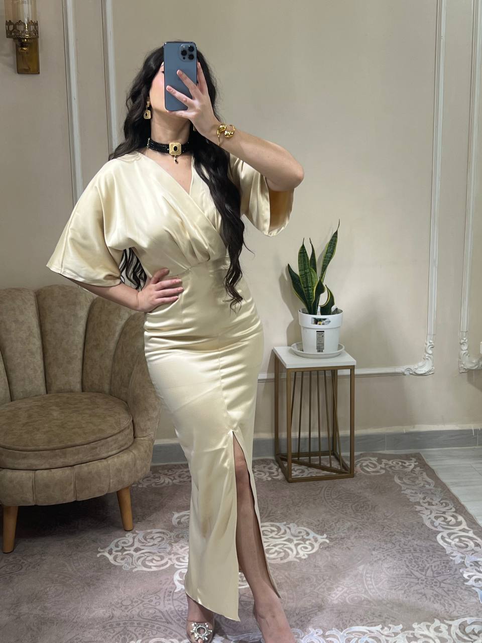 غوب ساتان فخم و بارد ، ستايل أنثوي راقـي، بقصّة تزيدك أناقة وجاذبية في السهرات، الأعراس وحتى الخطوبة!